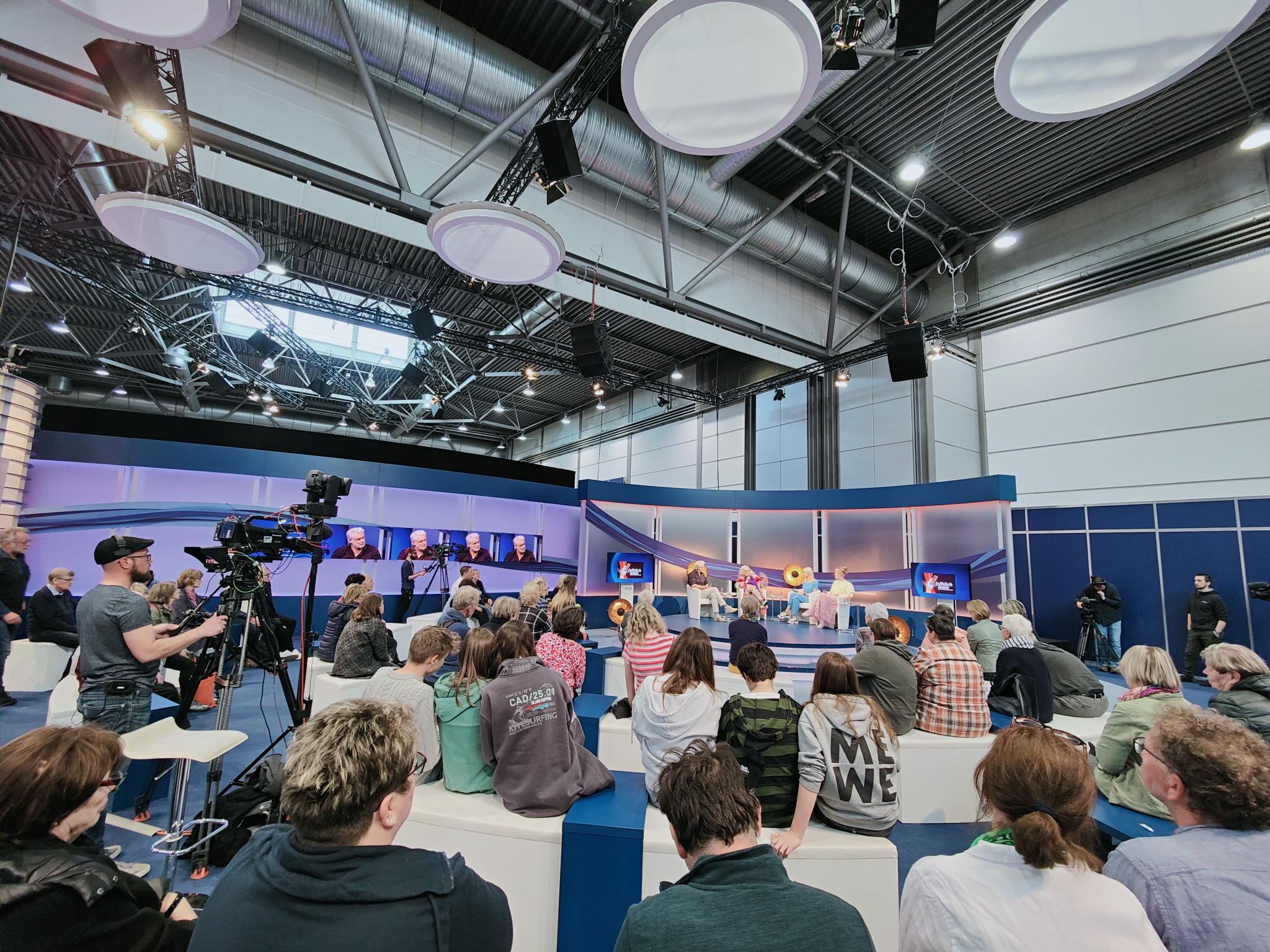 ▲书展现场的读书会活动其次,图书商灵活经营,提供个性化服务。参观莱比锡书展,记者的另一个强烈感受是,与中国相比,这里以小众读者为目标的图书非常多。比如记者看到一本记录2021年德国莱法州水灾的书,出版商介绍称,这本书在德国其他地区几乎没有人购买,但是在莱法州销售很好。一家莱比锡本地出版公司的CEO向记者详细介绍了他们公司的出版流程。和中国出版社由编辑决定一本书是否出版不同的是,他们公司出版书籍是直接由读者决定的:先投放产品介绍,读者如果有兴趣他们再出版。