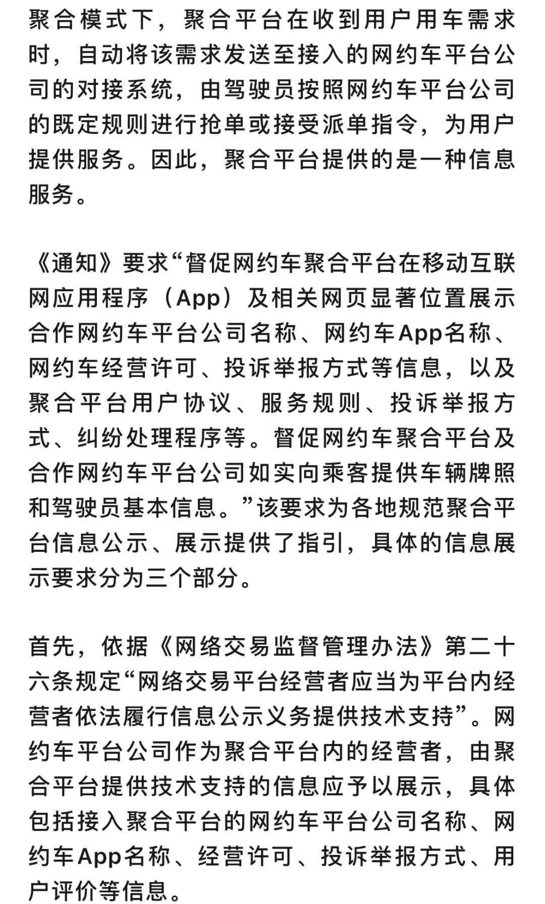 聚合平台提供信息撮合服务,保障乘客知情权