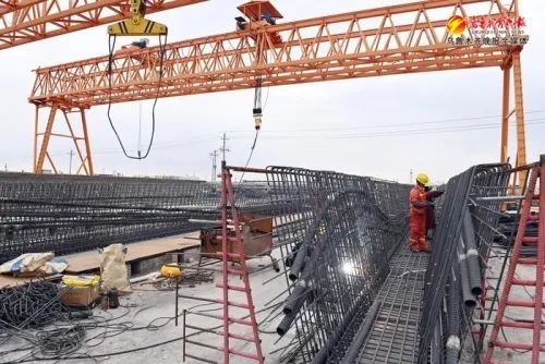 5月4日,在经开区(头屯河区)北站路(八钢公路-机场高速)项目小箱梁预制厂,工人们正在进行桥梁预制工作。湖南建工集团有限公司北站路(八钢公路-机场高速)建设工程项目部项目负责人董冠群说,今年9月前,六公里(八钢公路-乌奎高速段)和后三公里(北四路-小地窝堡立交)将达到八车道通车条件,高架桥部分主体结构年底全部完成,今年11月底达到北侧单幅的通车条件,预计2023年底项目整体完成度可达到92%,预计本项目2024年10月底达到交工交验条件。