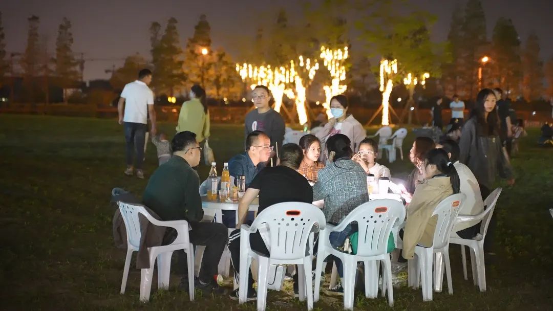 “万福烟火”夜市火了,小摊云集,游人如织,乐队表演、网红小吃、文创市集空降现场,带来了欢乐,让大家在美妙的场景中忘记一切。