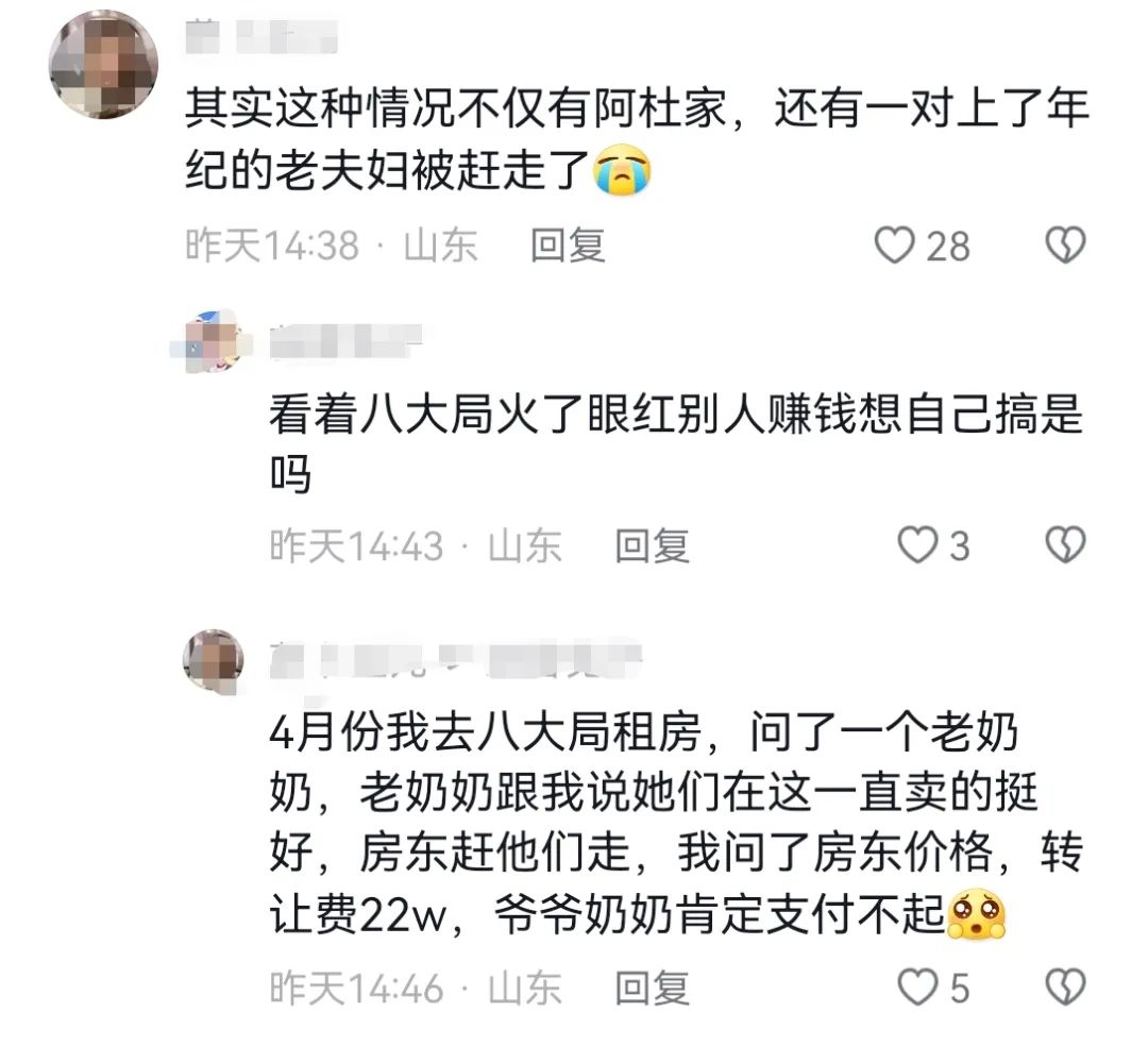 5月12日晚,抖音账号“八大局阿杜麻辣串”发布了一条视频,店主杜老板讲述了自己在八大局的这10年,证实了网民所说的“房东让搬走”这个说法。“这就是现在的小店,修修补补了10年。虽然不完美,但是它承载了太多回忆,所以突然说让收拾东西走人,心里接受不了。但是没办法,实实在在赚个辛苦钱,承受不了当下这种高昂的房租。被别人收走,心有不甘,但别无他法。”