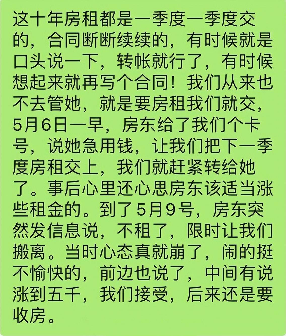 5月10日,有网友发布了文章开头提到的短视频,直言“什么操作,收完租金就反悔?”。
