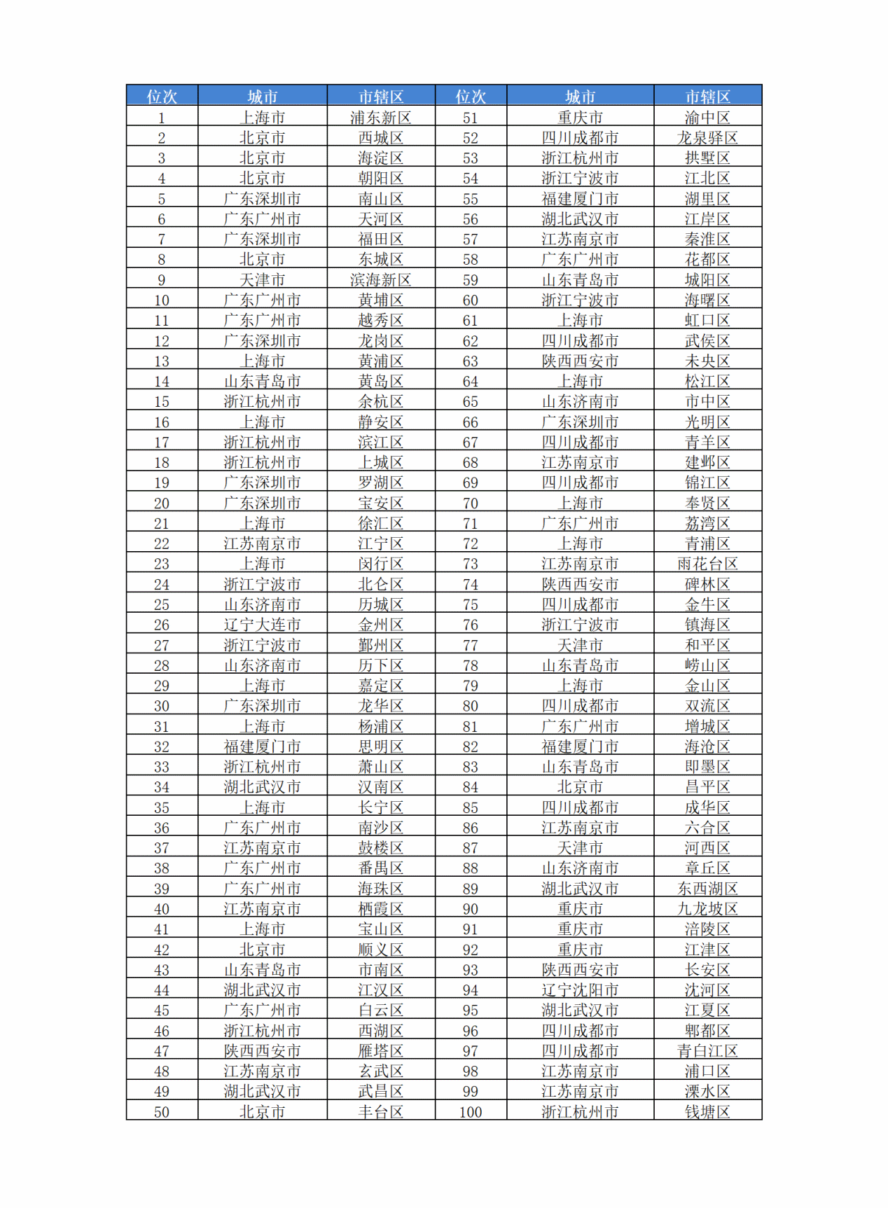 (直辖市和副省级城市市辖区)