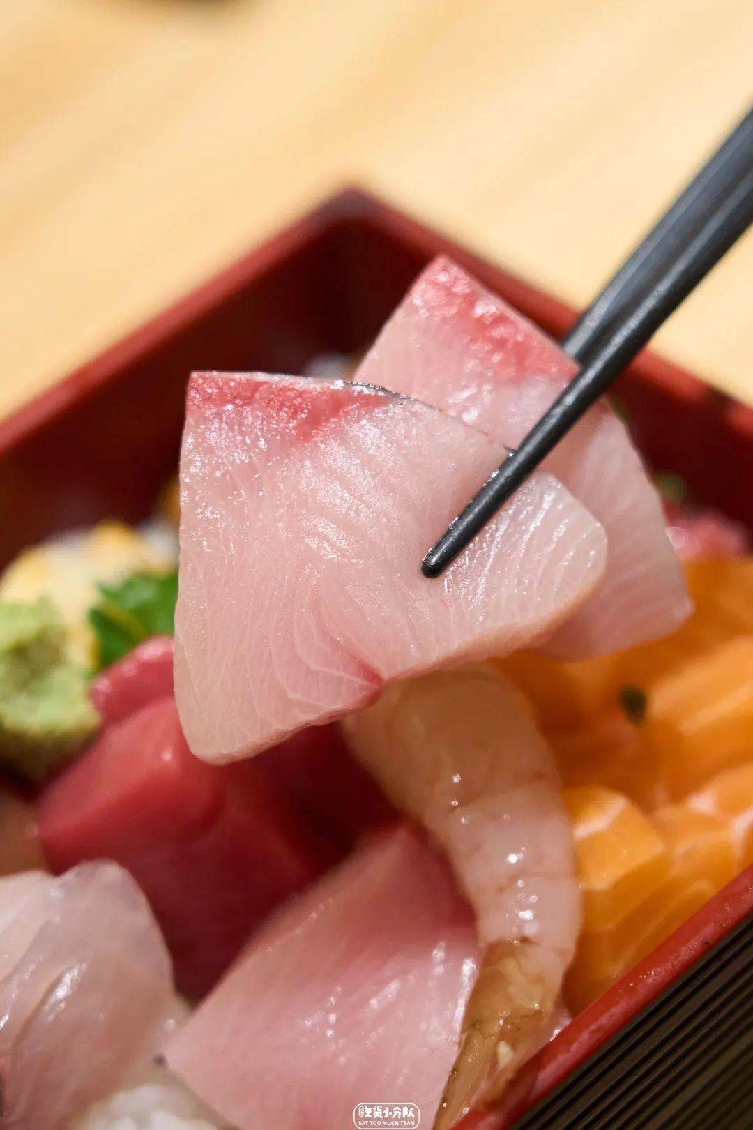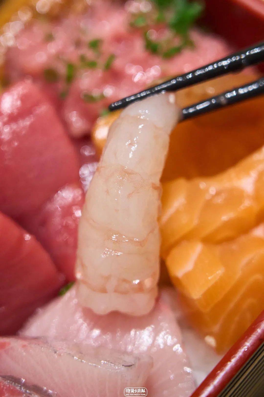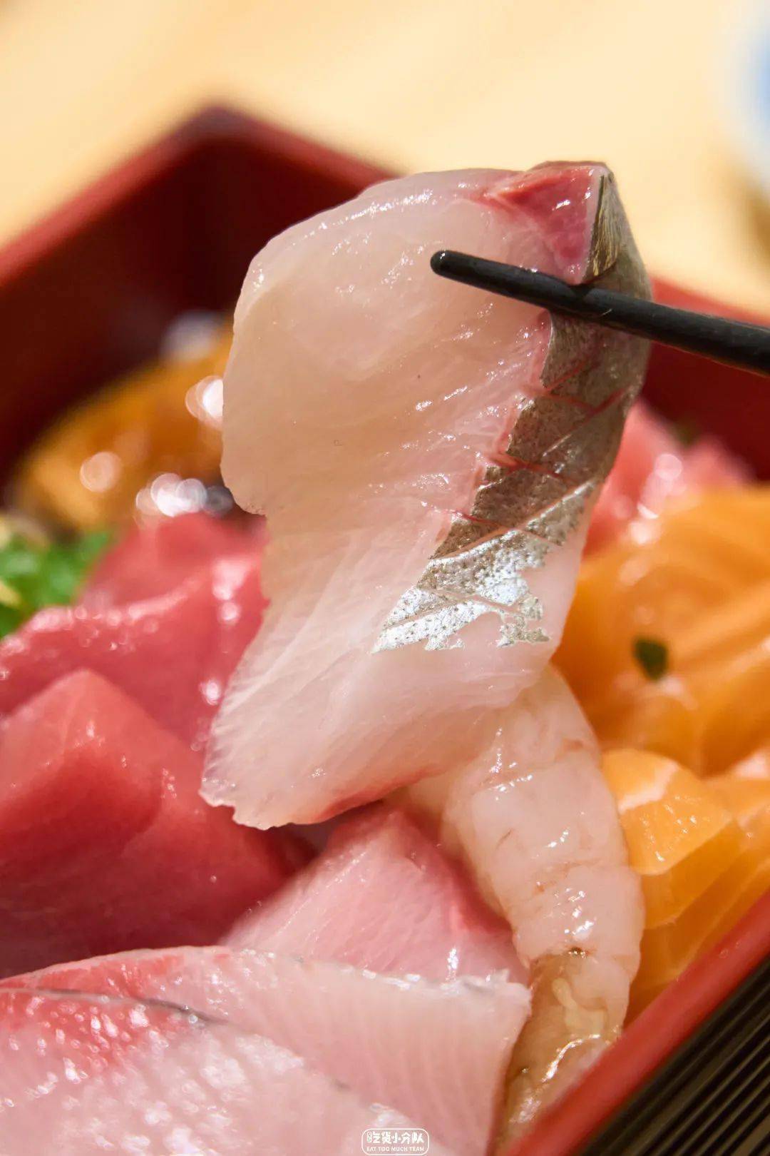 刺身用料十分新鲜,水分保持得很好,看起来晶莹亮泽,像刷了层油似的。蘸点酱油,鲜到骨子里,每一口都油润、绵密又饱满,“海的味道我知道!”老板可能也没想到,这碗海鲜丼的唯一缺点是「米饭太少了!」让人忍不住想问“老板米饭也很好吃,不能多来点吗?”