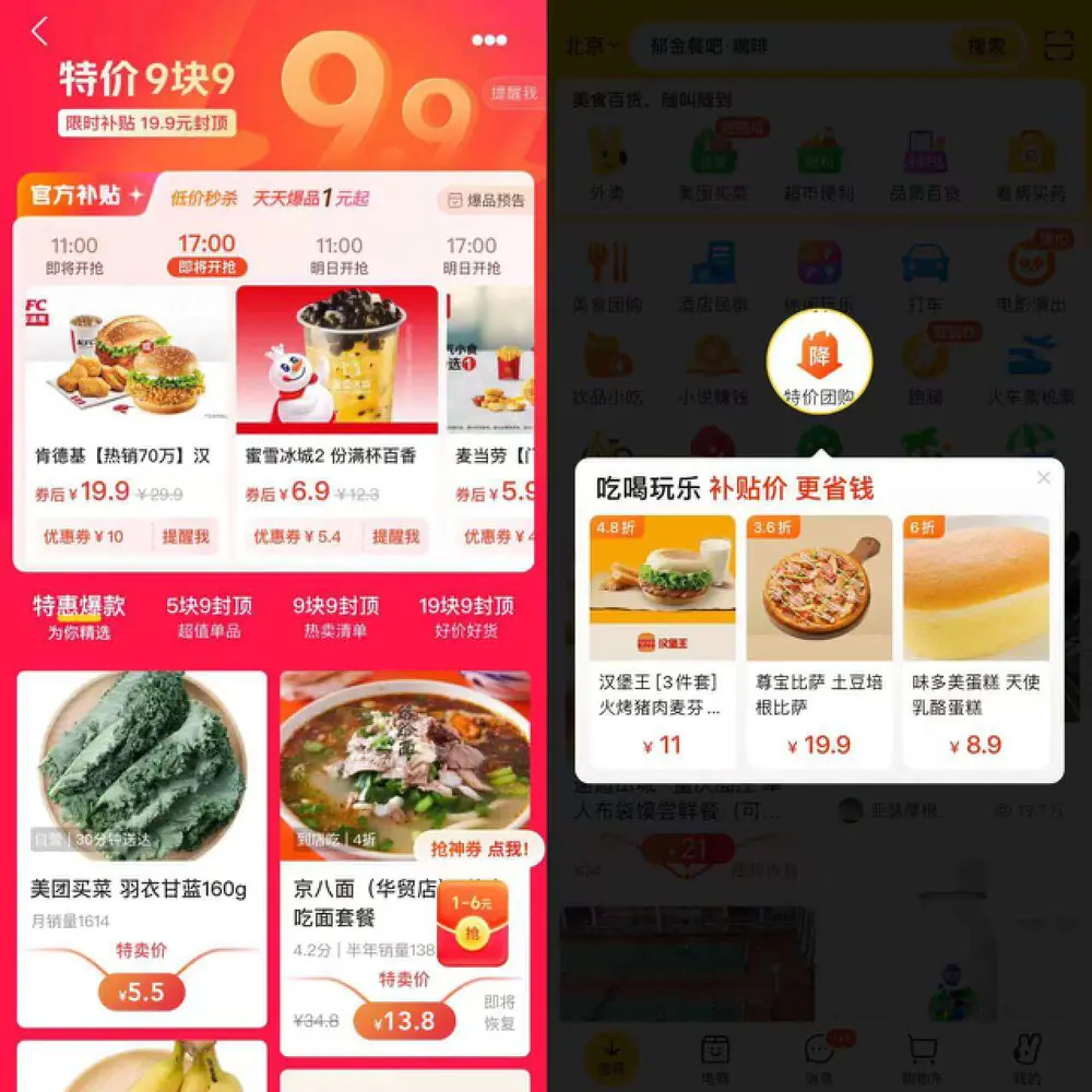 美团和饿了么也不断在本地生活方面发力。美团接连上线了美团圈圈探店、特价团购、“神抢手”等功能玩法,加大内容营销,并通过补贴重塑用户低价心智。另外,饿了么也与高德合作,加入地理位置信息服务,希望能够以地图承载更多的“到店”增值价值。
