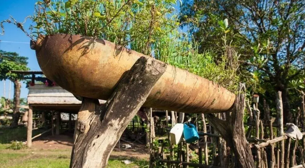 老挝人通过朴素的创意,把炸弹利用到方方面面,连农村常见的牛铃也是炸弹制成。