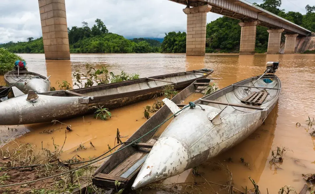 老挝人民深受其害,但也慢慢习惯,甚至学会废物利用,把军品转为日常生活用品。这是用战机保形油箱制作的“油(游)艇”。