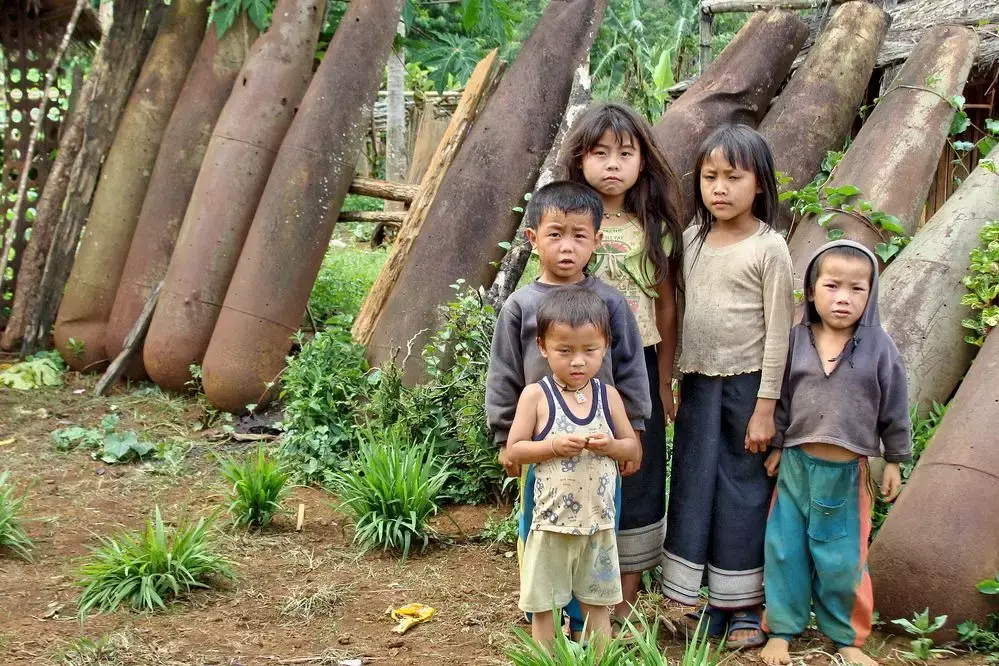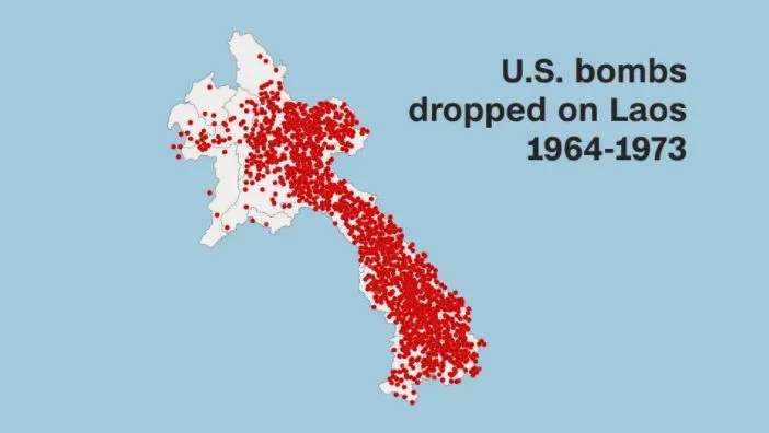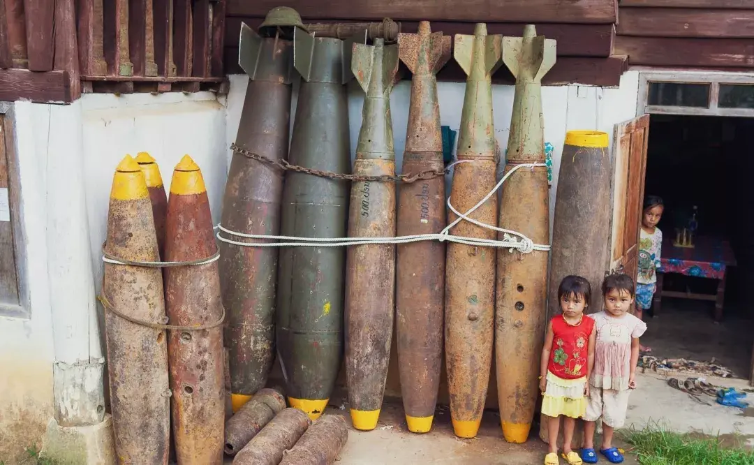 据官方统计,美国在1964至1973短短9年间,往老挝扔下了超过 200 万吨的炸弹,共约2.7亿颗。然而其中超过三成并没有爆炸。也就是说,战后老挝国土上依然存留着超过8000万枚隐藏的炸弹。