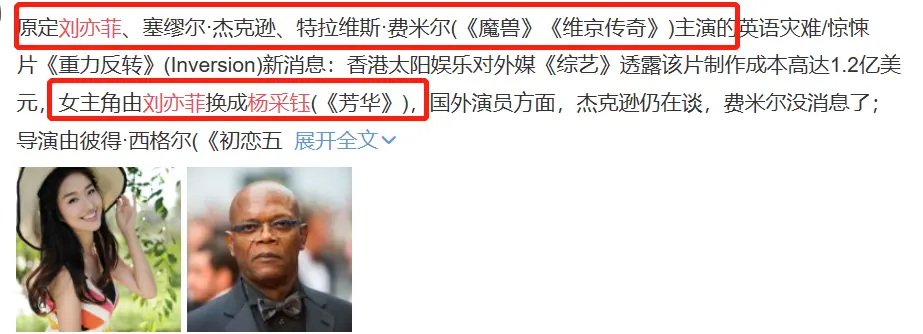 前段时间官宣原定刘亦菲为主演的大制作电影《重力反转》,女主换成了杨采钰,让不少网友都有些惊讶,这可是明着抢资源了。