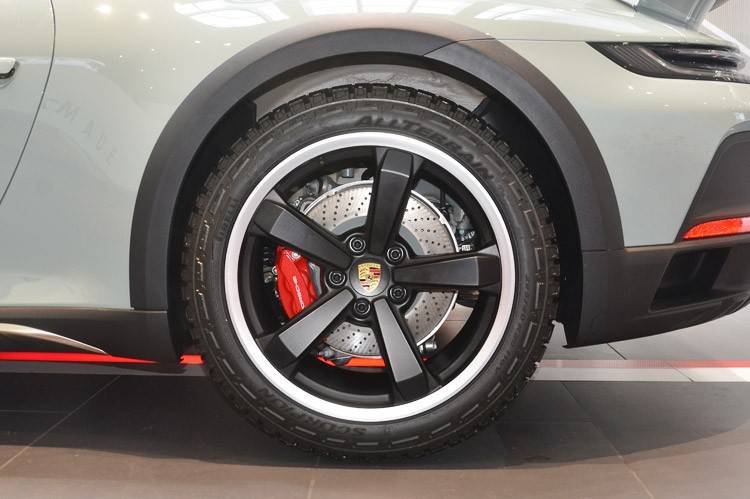 与轮圈之匹配的轮胎是倍耐力定制的Scorpion All Terrain Plus AT轮胎,这也能看出911 Dakar不仅仅是体现在“越野”的表面层次,真实性能一点也不会含糊。值得一提的是,据保时捷的工作人员称,911 Dakar的轮圈与轮胎不支持选装,只能用原配的,这是为了保证车辆的越野性不受影响。如果非要选装,最好的选择是P Zero的高性能轮胎。