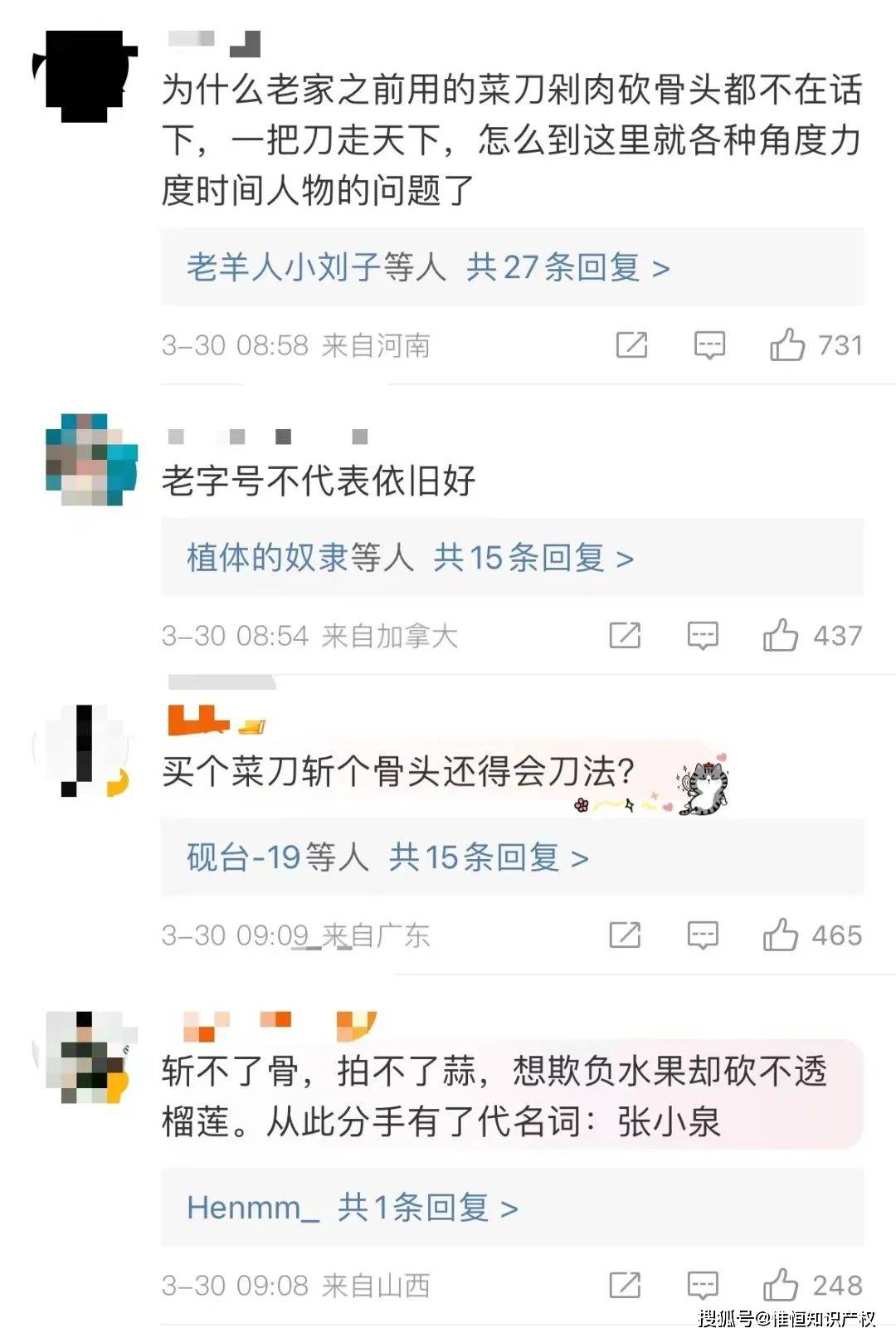 针对张小泉上述回应,网友们议论纷纷。有人称,“买个菜刀斩个骨头还得会刀法?”还有人调侃,“斩不了骨,拍不了蒜,想欺负水果却砍不透榴莲。从此分手有了代名词:张小泉。”