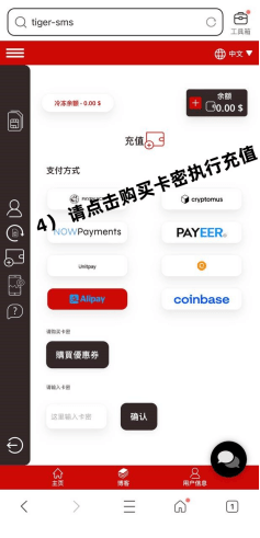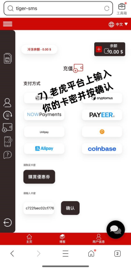 在老虎接码平台上充值,获得老虎验证码第二步