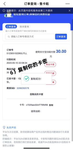 在此页面,有七种商品金额,分别是30、50、100、200等以此类推,选择要充值的数额,点击【立即支付】,支付成功后,订单页面会有一些支付信息,下方会显示购买的卡密,复制卡密。前往老虎平台上输入你的卡密,并按确认键。到这里第二步就已经完成了。