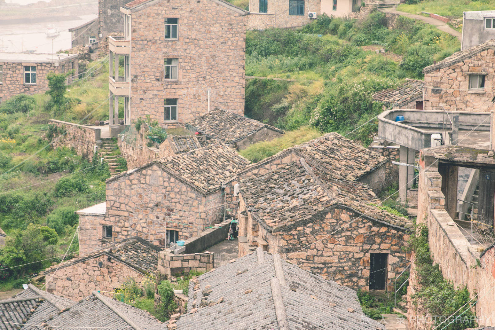 整个村落依山而建,每间石屋都有非常好的望海视觉,一条石砌的小径从山顶通往山脚的海边!