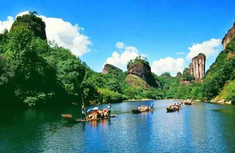 登上天游峰一览台,可以观赏到 九曲溪景观日出、云雾、佛光、夕阳、明月等天游五绝,冬季观云海奇观概率非常大。在九曲溪景观乘坐竹筏,漂流而下,欣赏武夷山"一溪贯群山,两岸列仙岫"的独特自然美景。