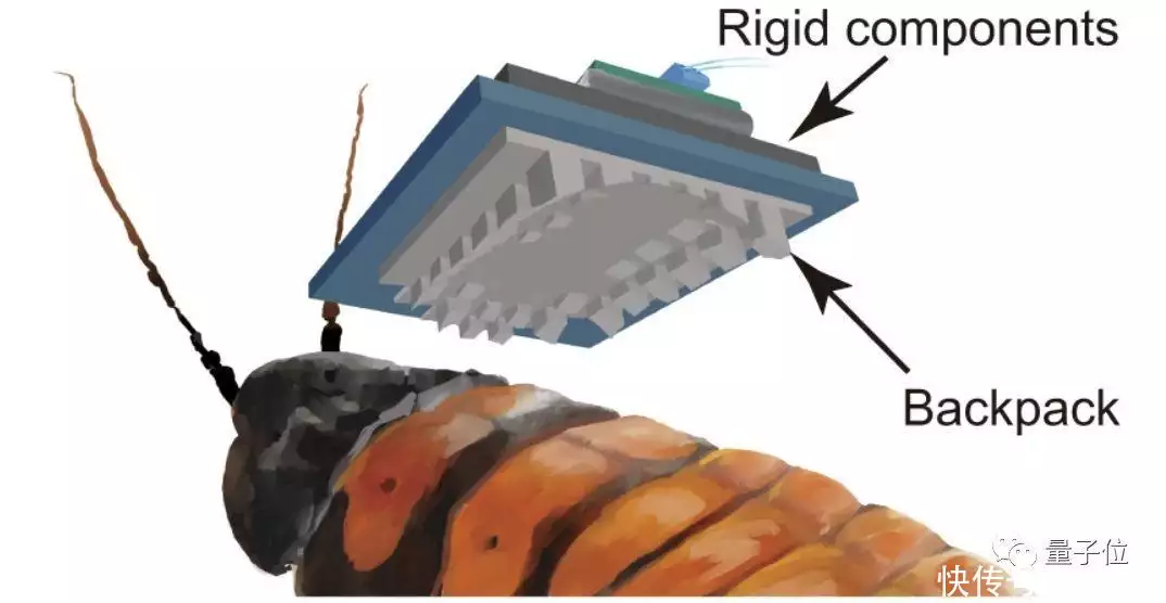 可以看到,所有的电子元件都装在蟑螂的背部。