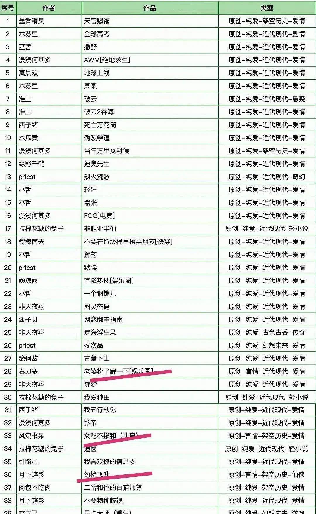 一眼望过去,排行前四十名的,只有3本言情小说,其它的,全部都是纯爱耽美。