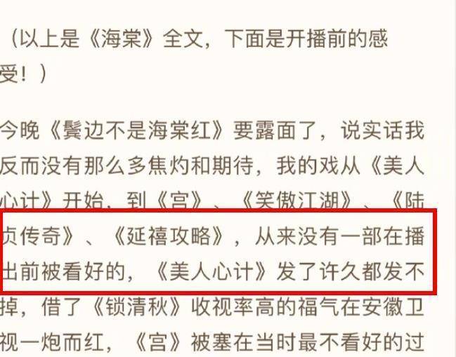 于正说:他的剧,从《美人心计》到《宫》再到《笑傲江湖》再到《陆贞传奇》再到《延禧攻略》,没有一部是开播前被看好的。