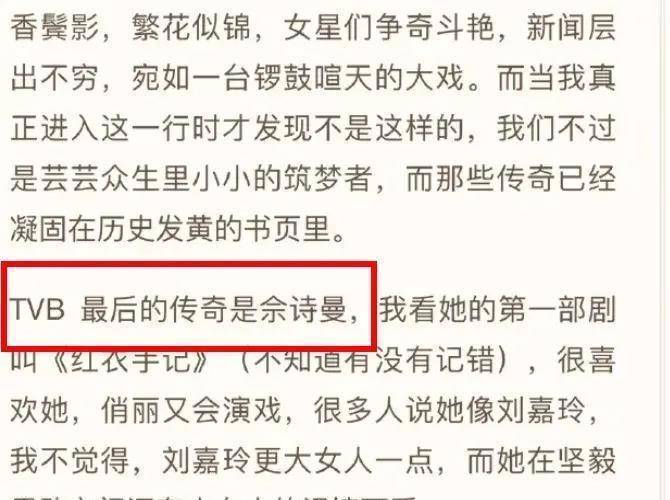 什么佘诗曼是是TVB最后的传奇啊,《延禧攻略》娴妃第一个想到的就是佘诗曼啊等等的彩虹屁,都跃然纸上。