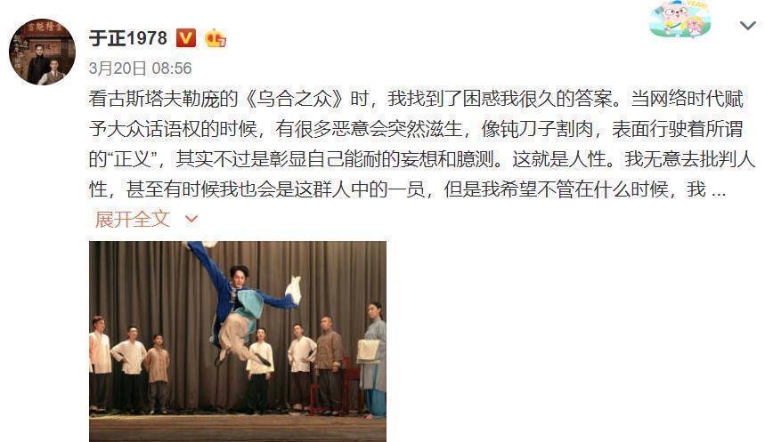 甚至在po的图中,于正第一次不顾自己“帅气”的形象,发了一张恶搞自己的照片。。。