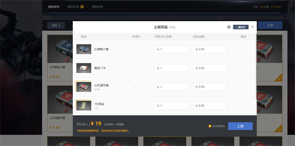 第五步:寄存的物品可以在BUFF库存界面中找到,在库存中选择要出售的物品进行定价,点击“上架”按钮即可。