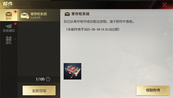 第三步:物品将会以邮件形式发送给玩家,玩家进入游戏内邮箱,点击“领取附件”即可。