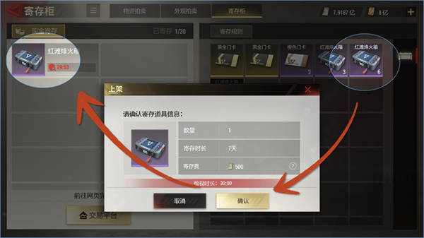 2.寄存的物品最多保留七天,七天后如无交易行为则会自动下架,玩家可重新上架。