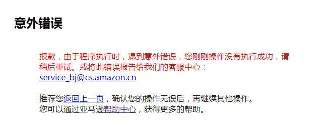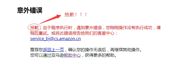 网页上文字显示“报歉,由于程序执行时,遇到意外错误,您刚刚操作没有执行成功,请稍后重试。”