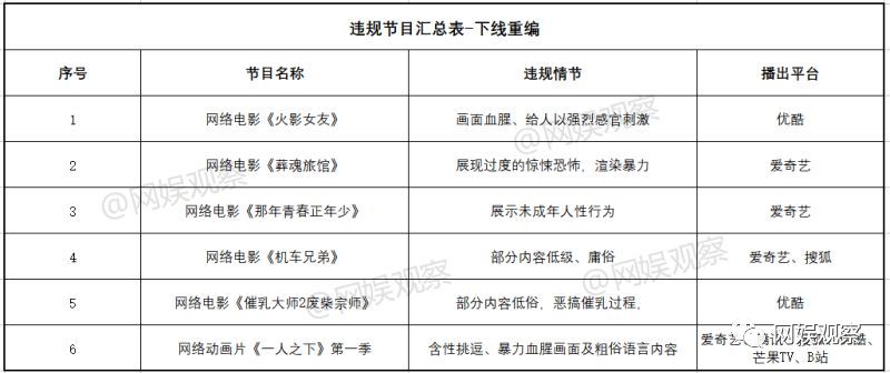 从本次违规的网影作品可以看出,违规情节主要涉及渲染暴力、渲染情色、展示人性阴暗等方面,也有部分作品是因不健康婚姻观、损害公安形象、画面血腥等因素被下架或整改。