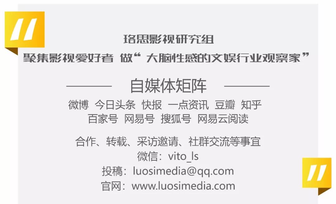 珞思影视研究组聚集了一群影视爱好者,深钻业务、精于思考、透视情怀,力做“大脑性感的文娱行业观察家”。