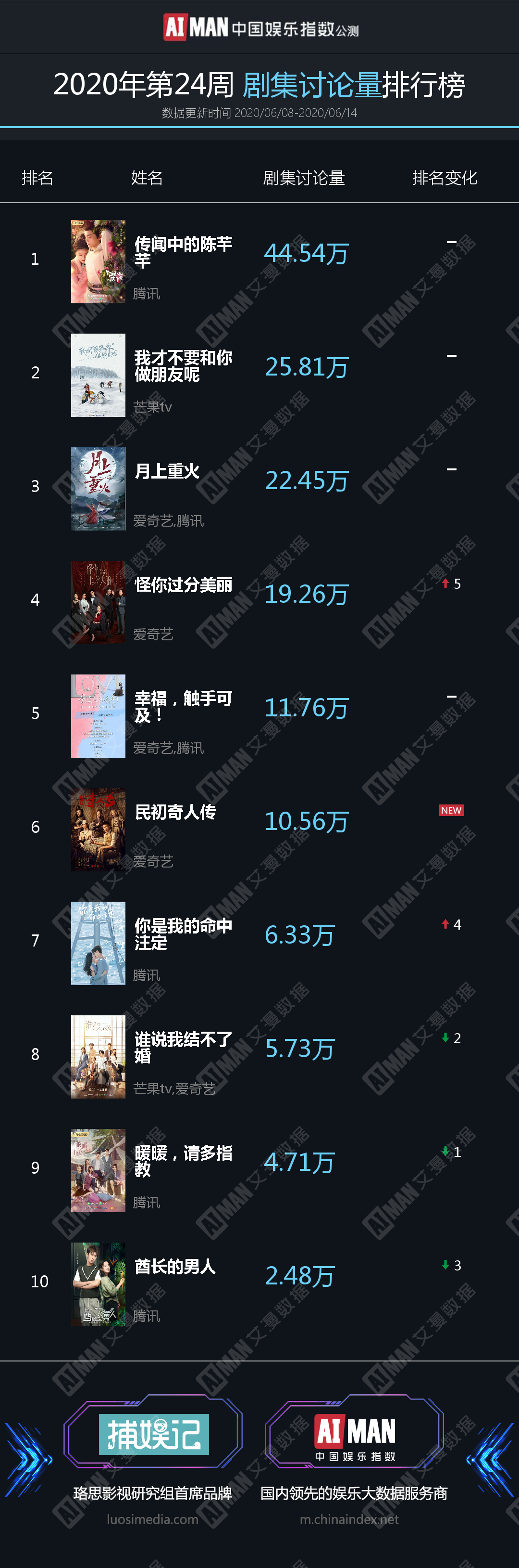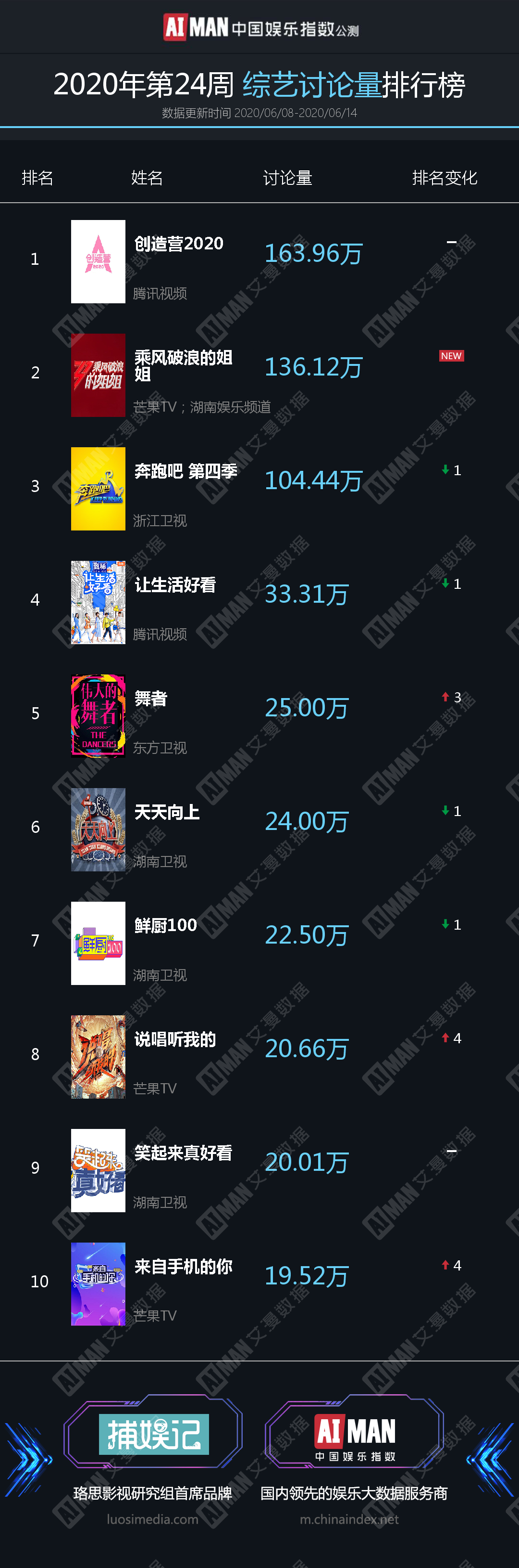 2020年第24周热榜 | 北京暂停开放文化娱乐场所,6月将是“姐姐”们的天下