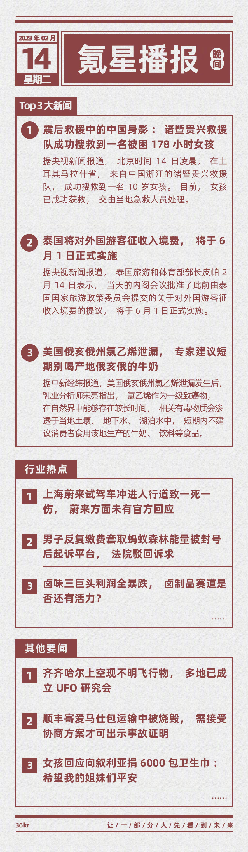 氪星播报|2月14日晚间都有哪些今日大事件?