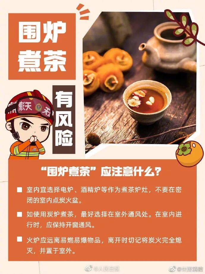 但休闲娱乐也好,跟风“网红”也罢,一个不容忽视的事实是,围炉煮茶已造成多地多起意外伤亡事件——一氧化碳中毒。
