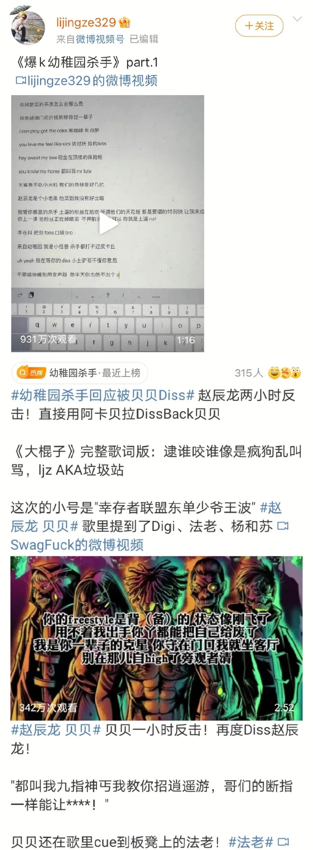 (后续还有rapper要持续这场diss大战,但两位当事人都无回应)