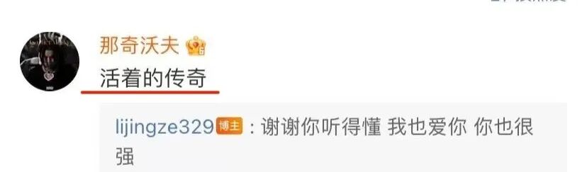 那奇沃夫在贝贝(李京泽,红花会剁手指那个)的微博下面夸他是“活着的传奇”。