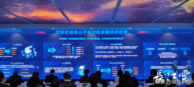揭牌仪式现场,汉阳区打造的虚拟形象代言人“知小音”发布了《汉阳区关于加快元宇宙创新发展扶持政策》,将从元宇宙底层支撑技术、元宇宙终端设备、元宇宙场景内容搭建和生产三个范围,鼓励产业集聚、加大金融支撑、推动应用场景落地。
