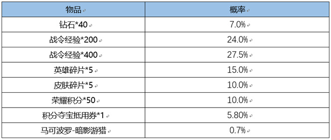暗影游猎和火炮绅士皮肤礼包价格是25战令币,拿到皮肤的概率是0.7%,保底125次。而芈月和猪八戒的勇者皮肤礼包价格则是15战令币,保底85次。