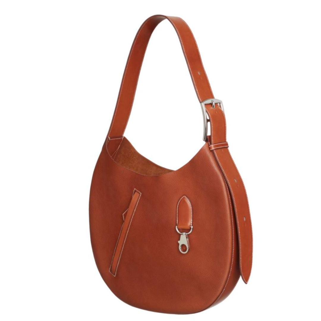 马术风格Arçon Barénia Faubourg小牛皮手袋再现鞍翼的圆润造型,饰以超大Étrivière搭扣用于调节肩带,简约线条凸显宽敞结构,外侧口袋呈现全新风貌。