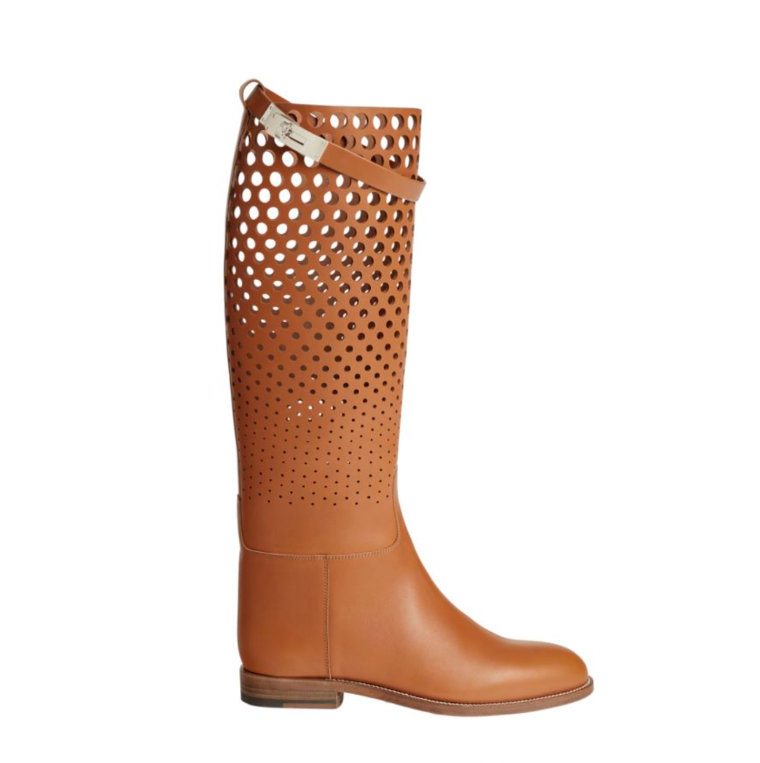 Héritage小牛皮靴追溯马术运动代表性配饰——骑士经典鞋靴,渐变孔眼的设计为整体造型增加通透轻盈之感,亦步亦趋之间,潇洒率性的骑士精神应运而生。