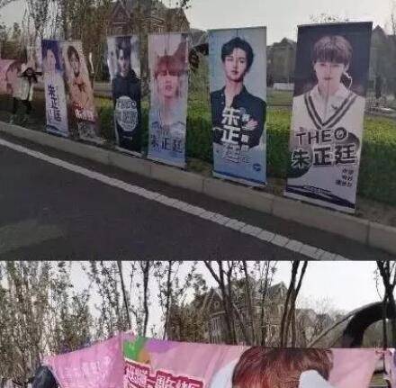 然后时间转到一年后《青春有你》的决赛场。今天会有一个新的偶像团体诞生,但是今天也是NINEPERCENT成团一周年。粉丝们为了庆祝,粉丝阵仗浩大,把整个外场都包了。