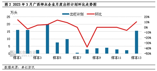 据卓创资讯监测,广西样本规模企业2月计划完成率为127.27%,3月份出栏计划环比增幅3.97%,随着二育对供应影响及人员流动增加刺激终端猪肉消费,不排除3月完成率在100%以上的可能性。