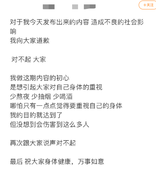 虚构患癌内容博主道歉