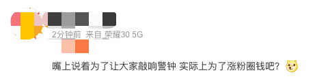 还有网友一语“戳穿”,这种行为说是为了让大家敲响警钟,实际上是为了涨粉圈钱。