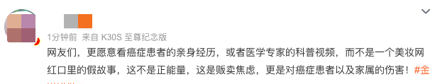 许多网友认为比起所谓的警示作用,这种行为更多是在消费癌症病人、消费大众的同情心和信任。