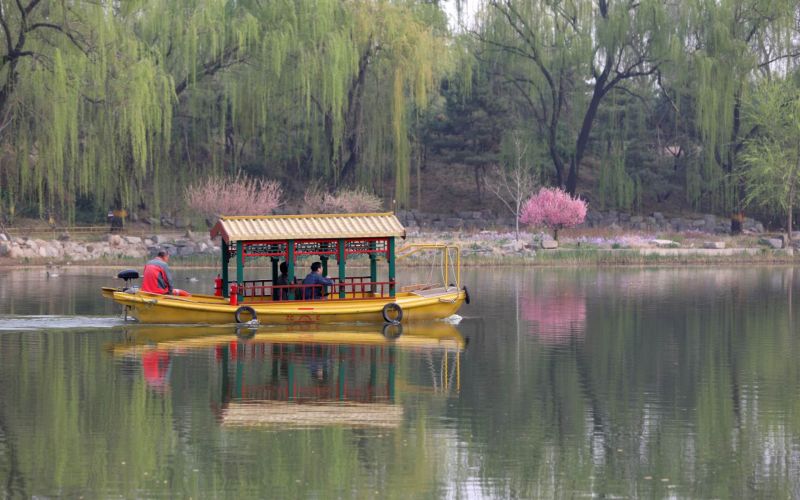 游船穿行在圆明园的满园春色中。新京报记者 浦峰 摄系列活动包含春季主题诗会、摄影展、快闪表演等一系列文化活动,为广大市民游客提供休闲放松的自然环境和丰富多彩的游园活动,此次系列活动将持续至5月15日。