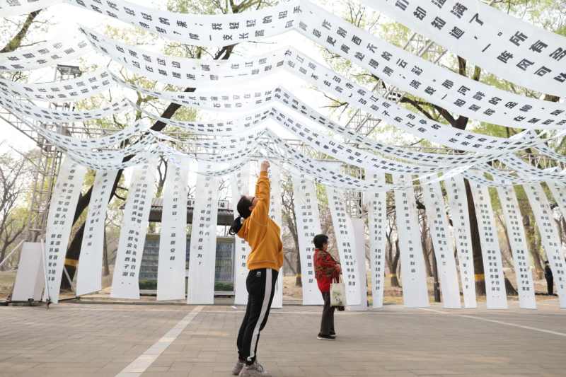 圆明园春泽斋,“春和景明”春季主题诗会现场挂满了古今诗词。新京报记者 浦峰 摄在今天这个充满诗情画意的日子里,“春和景明”圆明园春季主题诗会在圆明园春泽斋拉开序幕,与一般诗会不同,作为“爱尚·三山五园”系列文化活动之一,本次诗会以主会场和分会场的联动模式开展,设置诗歌朗诵会、快闪表演、春季主题摄影展三大主题板块,采取诗与歌、诗与乐、诗与影的艺术表现形式,融汇古今中外名篇,形成“诗、音、画”多艺术形式的互动。
