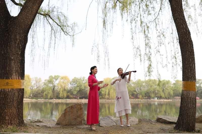 与主会场同时进行的还有松风萝月、茜园两处乐器演奏分会场快闪活动,古筝、二胡、小提琴,接续奏响春天的乐章......从传统到现代,文学与音乐,人文与自然在这里完美融合。“优美的音画”“流动的诗”为这座皇家园林赋予了新的生机与意义,推动公共文化服务实现高质量发展,生动地展现了中华民族传统文化的博大魅力,共同表达了对生活的美好初心和对新时代的坚定信心。