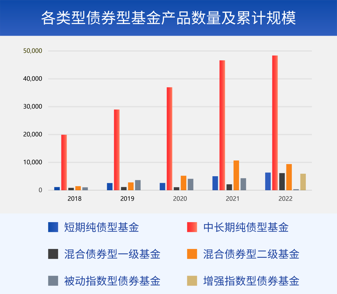 数据来源:Wind,截至2022年12月31日,债券型基金包括可转换债券型基金,但2021年之前并未做相关数据统计,故此图剔除了可转换债券型基金相关数据。