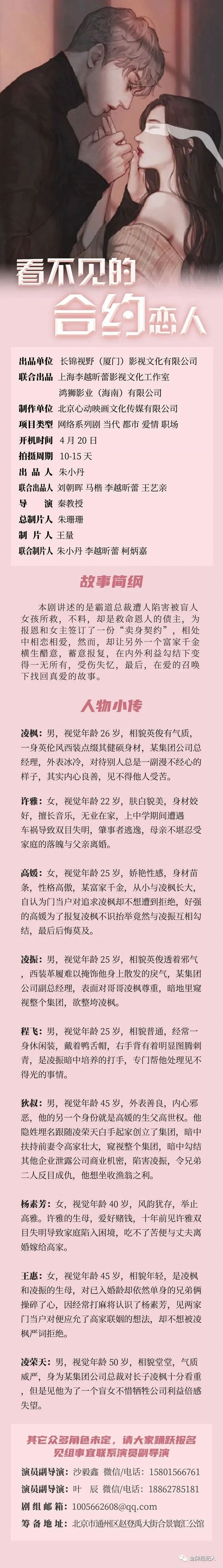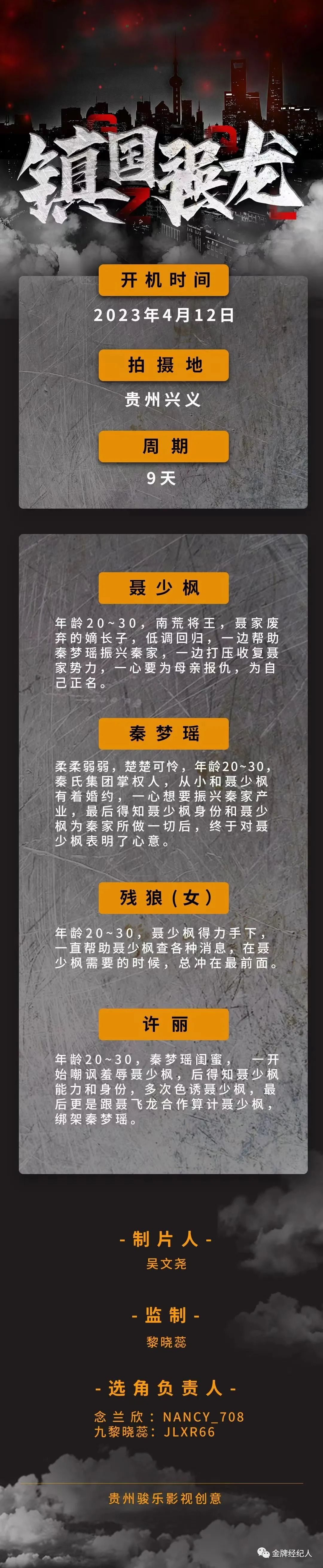 选角负责人:念兰欣微信NANCY_708