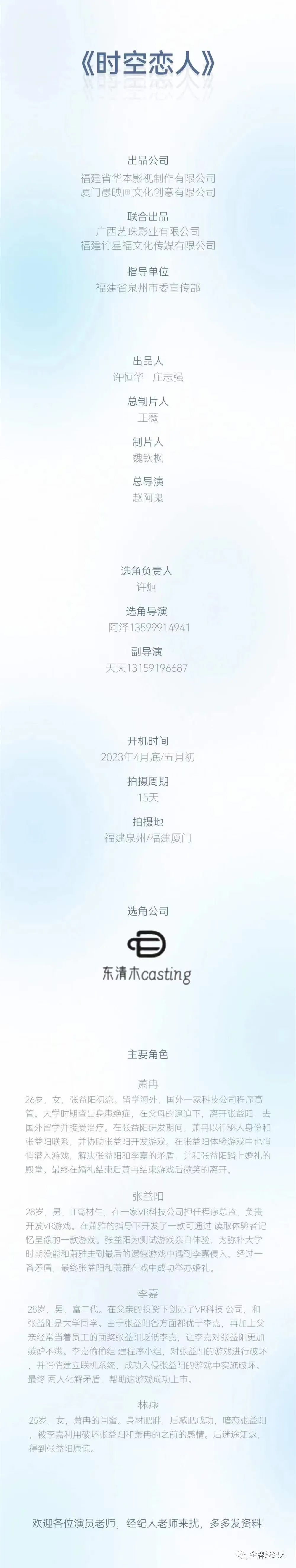 选角团队:东清木casting